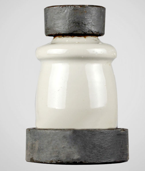 絕緣子由瓷件和上、下金屬附件用膠合劑膠裝而成。瓷件端面與金屬附件膠裝接觸部位墊有彈性襯墊,瓷件膠裝部位分別采用上砂、滾花、挖槽等結(jié)構(gòu),以保證機(jī)械強(qiáng)度、防止松動(dòng)、扭轉(zhuǎn)。瓷件表面均勻上白釉,金屬附件表面涂灰磁漆。
