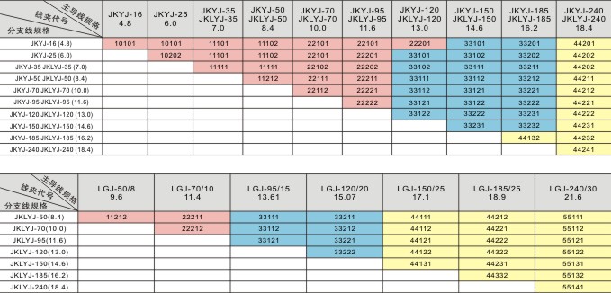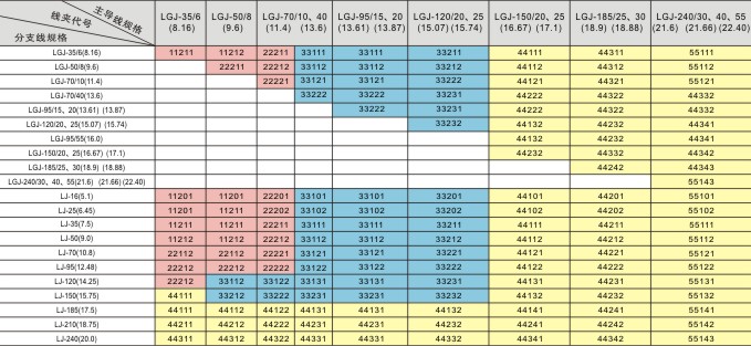 2、按導(dǎo)線(xiàn)的類(lèi)型及規(guī)格查對(duì)相應(yīng)的《選型表》;