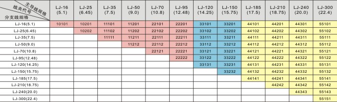 3、如使用的導(dǎo)線(xiàn)不在表中范圍,訂購(gòu)時(shí)請(qǐng)?jiān)敿?xì)注明主線(xiàn)、分支線(xiàn)的型號(hào)規(guī)格及直徑;