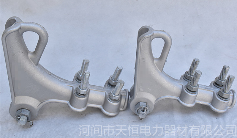 耐張線夾用來將導(dǎo)線或避雷線固定在非直線桿塔耐張絕緣子串,起錨作用,亦用來固定拉線桿塔的拉線。