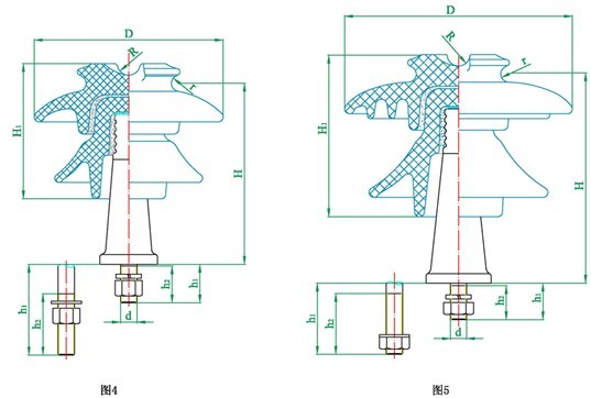 絕緣子按結(jié)構(gòu)形式分為:膠裝式和鋅套螺紋連接式兩種。膠裝式是瓷件直接膠裝水泥與腳連接,鋼腳膠入瓷件部分壓有深槽,以防鋼腳松動(dòng),鋼腳頂端與瓷件之間墊有彈性襯墊。鋅套螺紋連接式是瓷件內(nèi)孔先通過(guò)水泥膠裝以鋅螺套,再靠此螺套螺紋與鋼腳連接。鋅螺套有緩沖作用,也便于更換瓷件。也有采用靠瓷螺紋機(jī)械連接的。