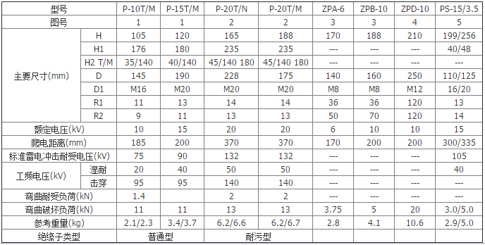 GB/T1000.2-1988標(biāo)準(zhǔn)中規(guī)定的新型號(hào)針式瓷絕緣子額定電壓均為10kV,按適用的環(huán)境條件分為:普通型、加強(qiáng)絕緣1型(中污型)、加強(qiáng)絕緣2型(特重污型)三種。