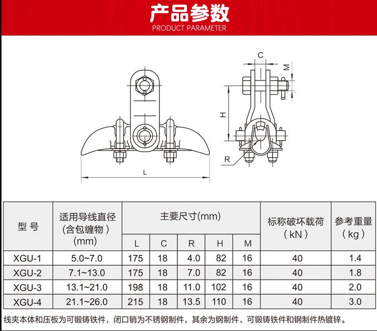 懸垂線(xiàn)夾技術(shù)參數(shù)