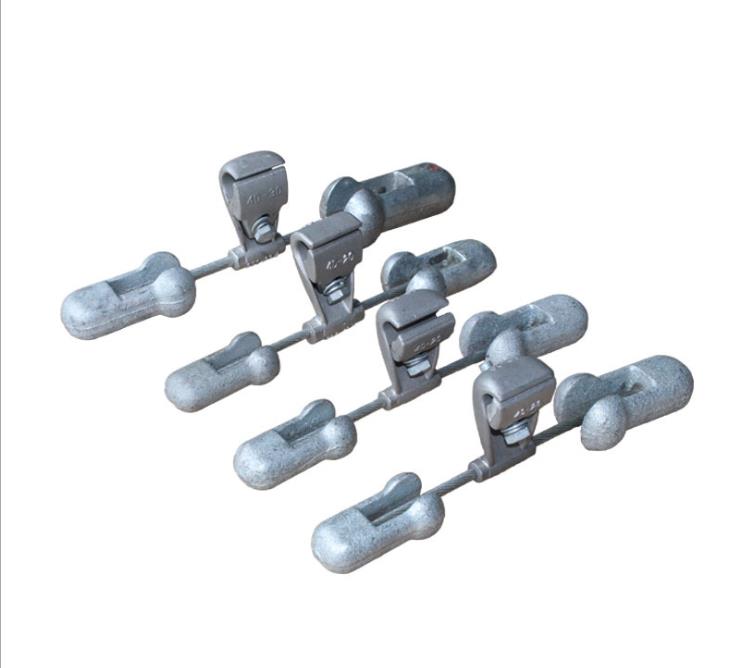 常見防振手段包括安裝防震錘、阻尼線,或者防震錘與阻尼線結(jié)合使用。高頻振動主要由阻尼線防振,低頻振動主要由防振錘防振。普通檔距導(dǎo)線由于檔距小和導(dǎo)線懸掛點較低,一般采用防振錘防振。振動時,導(dǎo)線帶動防振錘一起振動,導(dǎo)線的振動能量被防振錘吸收,從而起到對導(dǎo)線的保護作用[輸電線路導(dǎo)線的振動和防振]。防震錘材質(zhì)要求依照《DL/T 1099-2009 防振錘技術(shù)條件和試驗方法》執(zhí)行。